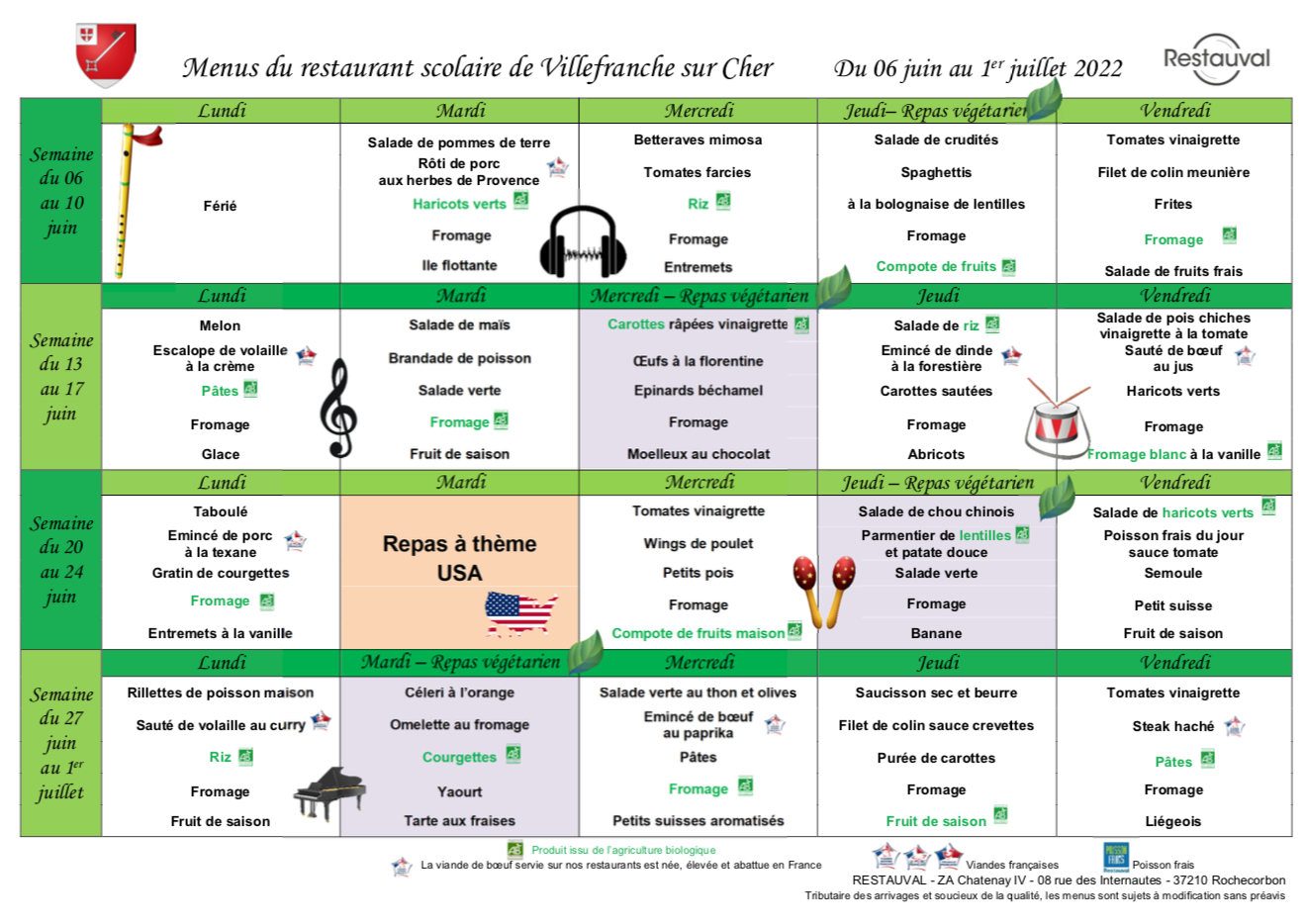 Les menus de la cantine